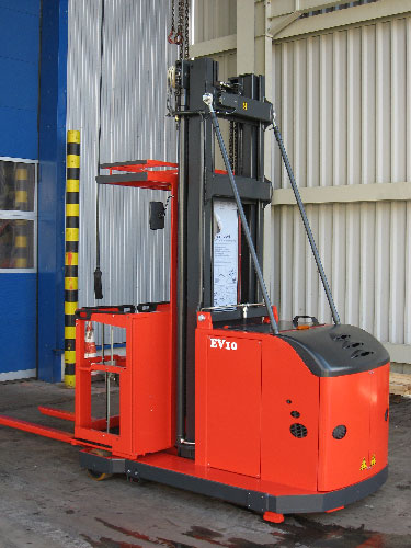 The EV series of counter-balanced order selectors incorporate high performance with and enclosed operator compartment for safety purposes. Optional split controls - auxiliary lift - walk around platforms are some of the numerous options available.