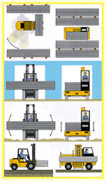 Side loading vehicles are able to negotiate narrow aisles, door ways and uneven floors with long and cumbersome loads. Transported loads rest on the vehicle frame in a secure and stable position. Electric sideloaders feature multi-direction all wheel steering capabilities.